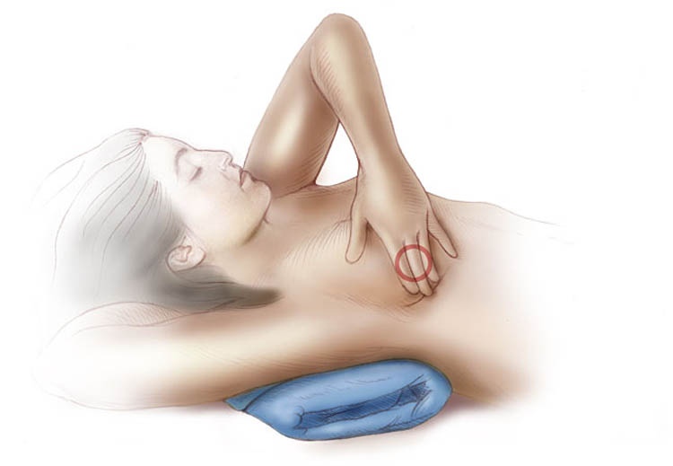 The best way to check your breasts each month is to pick-a-motion (PAM) you will use. The three illustrations below will help you make that choice.